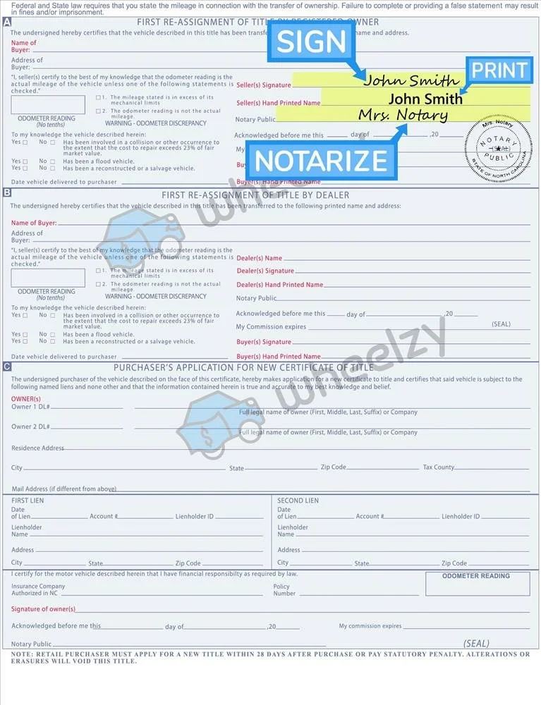 Documentation: Ensure all required sections of the title are filled out, including the buyer's name, address, odometer reading, and sale price.